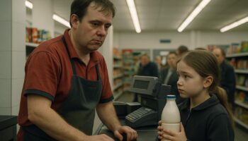 «Пожалуйста… можно я заплачу завтра?» — тихо спросила девочка, сжимая бутылку молока, отчаянно надеясь на понимание и поддержку.