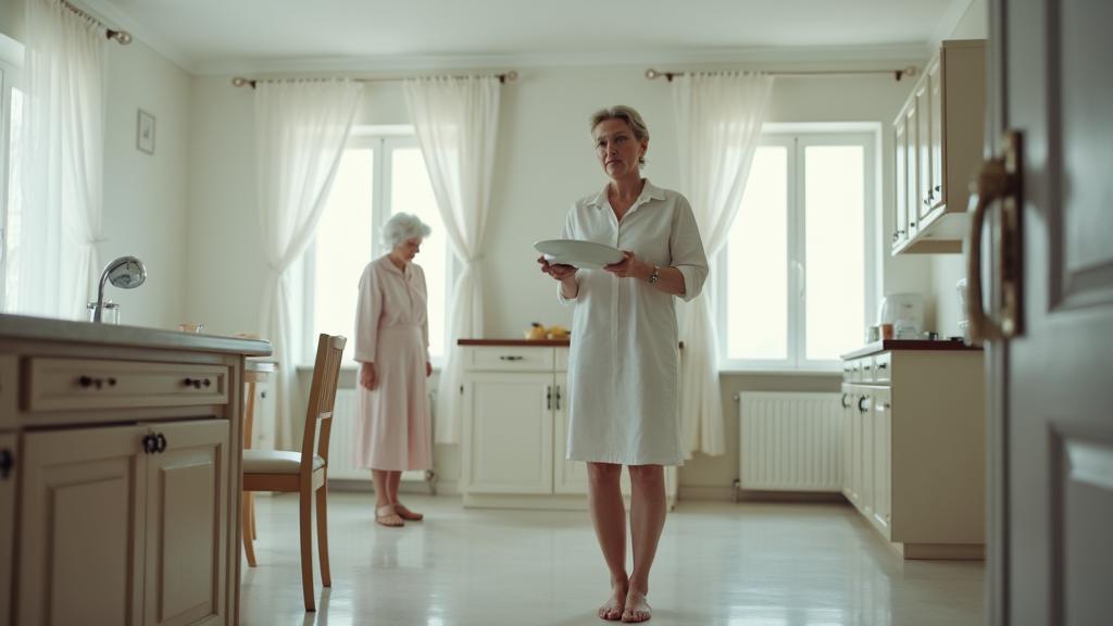Я демонстративно протёрла и без того сухую тарелку, ставя её на полку. Она отступила на шаг, прижимаясь к дверному косяку. Днём она сидела на краю дивана в гостиной, сложив на колени свои сухие, покрытые пигментными пятнами руки.