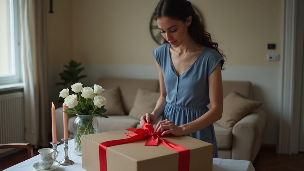 Анна аккуратно поправила ярко-красную атласную ленту на картонной коробке и отступила на шаг, внимательно оценивая результат.