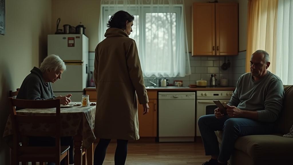 Тамара оттолкнула дверь квартиры и сразу уловила голоса, доносящиеся с кухни. Муж — Алексей — беседовал с матерью, Ниной Петровной. Женщина приехала утром и устроилась на кухне, как обычно.