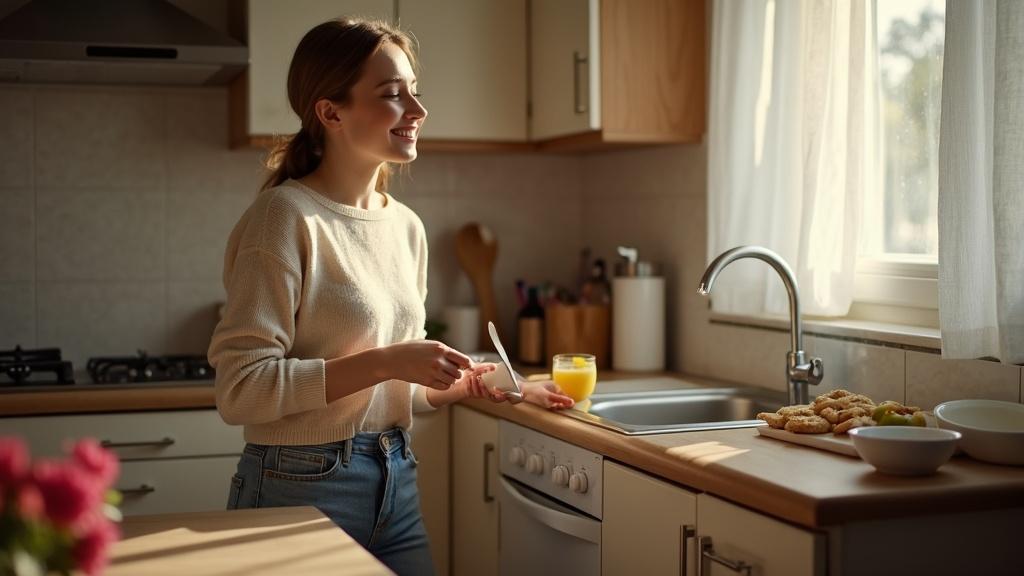 Аня, весело напевая мелодию, которая прилипла к ней с утра, готовила себе завтрак.
