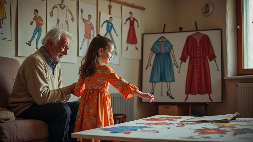 Игорь Васильевич был настолько увлечен своей работой и заботился о воспитанниках, что самостоятельно рисовал эскизы костюмов и тщательно следил, чтобы их шили в ателье в точном соответствии с его замыслом. — Значит, он еще и художник? — удивилась девочка. — Да, и я познакомлю тебя с ним поближе, — пообещала бабушка. — Сейчас он на пенсии, уже не работает, но очень любит детей.