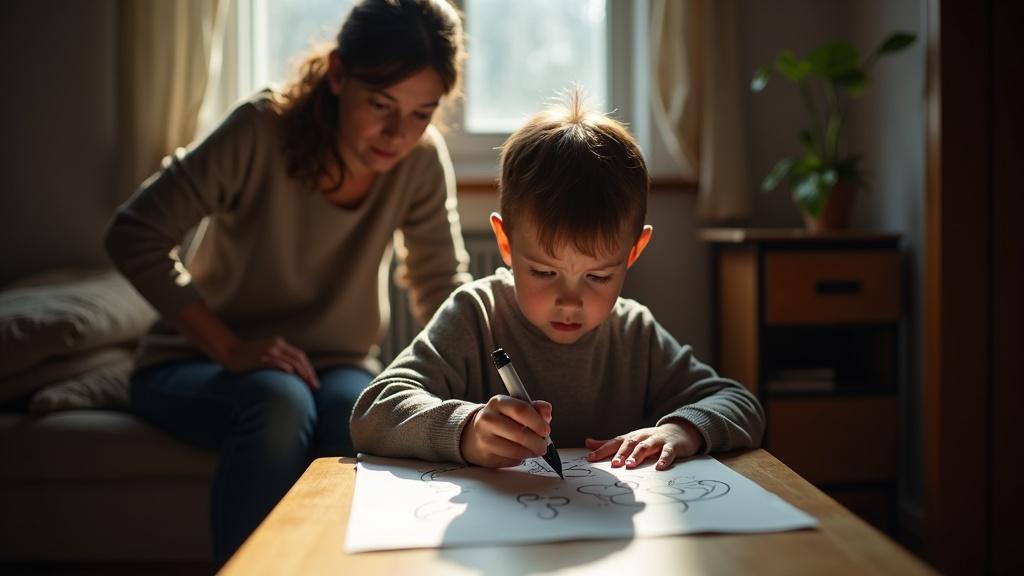 Рисование чёрных кругов стало для него способом справиться с темнотой внутри себя. Когда взрослые начинали ругаться — он рисовал. Когда внезапно замолкали при его появлении — снова тянулся к фломастеру. Когда Оксана тихо плакала на кухне, думая, что никто не замечает — он тоже рисовал свои бесконечные тёмные окружности.