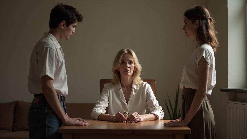 Лариса восседала во главе стола, сжимая в руке ключи от квартиры так, словно вручала медаль за заслуги. Напротив стояли её сын с женой — выпрямившись, будто на торжественной линейке.