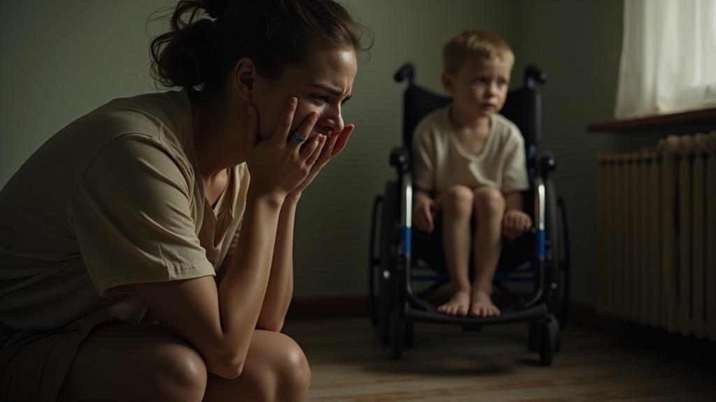 Брат сидел в своей коляске с большими колёсами и смотрел на нас испуганными глазами — без слёз, но от этого только тяжелее становилось внутри.