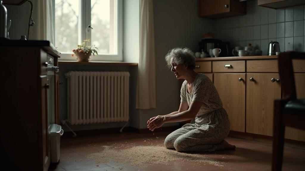 Мария сидела на кухне у окна, когда это произошло. Встала, чтобы взять соль — суп почти готов был, и вдруг ноги словно отказали, стали чужими и ватными. Не успела дойти до стола — осела прямо на пол, опрокинув банку с крупой. Гречка рассыпалась по линолеуму, а она пыталась собрать её дрожащими руками, размазывая по щекам слёзы злости и бессилия.