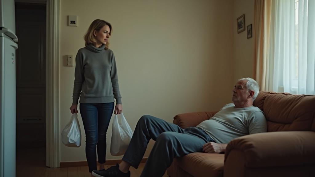 Оксана застыла у холодильника, держа в руках пакеты. Антон развалился на диване, не удостоив её взглядом — он продолжал смотреть передачу о колебаниях валютных курсов. На журнальном столике перед ним стояла тарелка с наполовину съеденными магазинными пельменями.