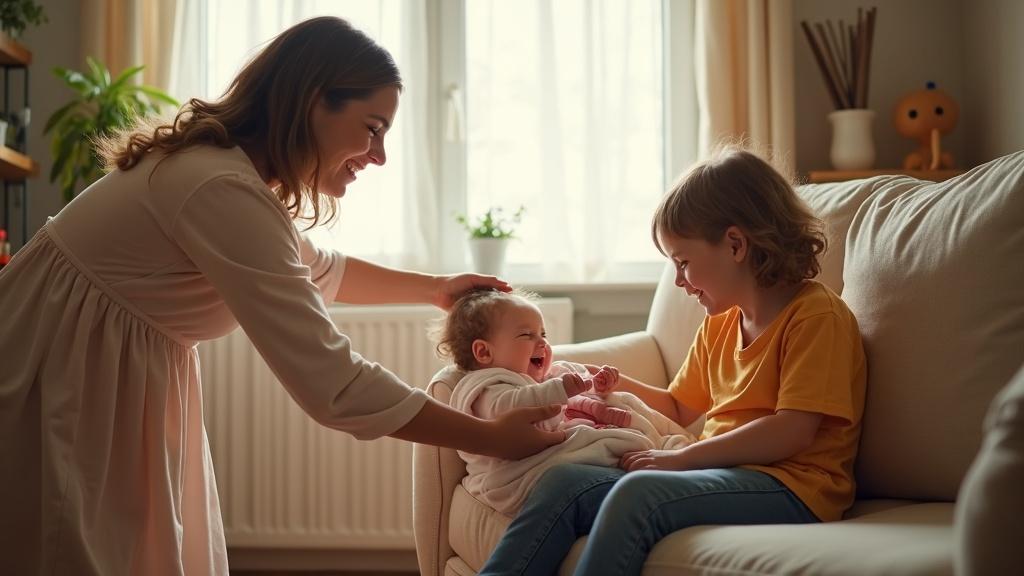 — Конечно тебе, — мягко ответила она, подойдя ближе и ласково пригладив старшую по растрёпанным волосам. — Ты же у нас главный весельчак для малышки.