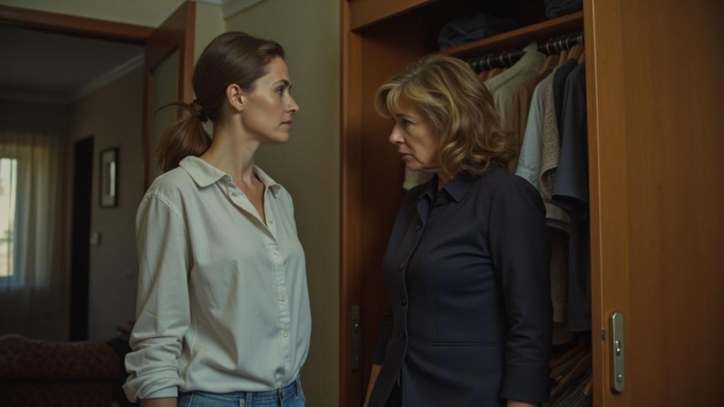 Разбирая бельё в шкафу, Надя вздрогнула от неожиданности — дверь распахнулась, и на пороге, словно застывшая статуя гнева, появилась Ирина. В этот момент свекровь выглядела так, будто вот-вот сорвётся с цепи: даже её аккуратная причёска распалась, и пряди волос торчали в разные стороны.