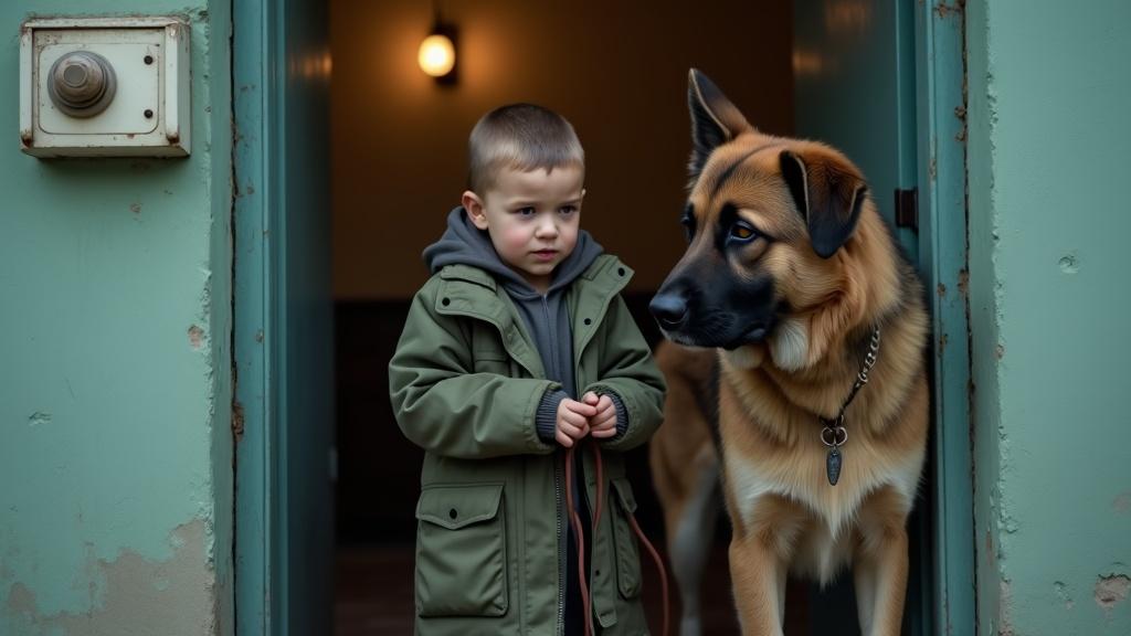 Мальчик ведёт собаку вперёд на поводке; я машинально отодвигаю кружку подальше от края стола — чтобы хвостом не задели. Но хвост опущен деликатно: Иосиф идёт рядом спокойно и будто бы знает правила поведения в помещении. У самой двери он оборачивается назад — проверяет расстояние до мальчика. Это хороший признак: если собака держит контакт с человеком, значит между ними есть доверие и порядок.