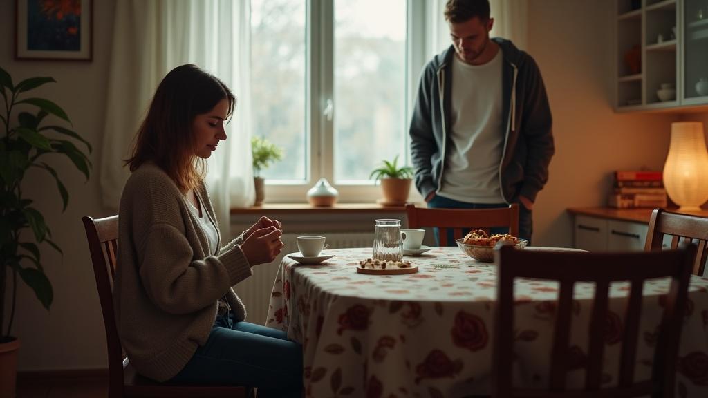 Александр вернулся поздно вечером после работы – как обычно бывало в будни. Повесил куртку в прихожей, снял обувь и прошёл на кухню: ужин уже был накрыт на столе. Оксана сидела у окна с чашкой чая в руках.