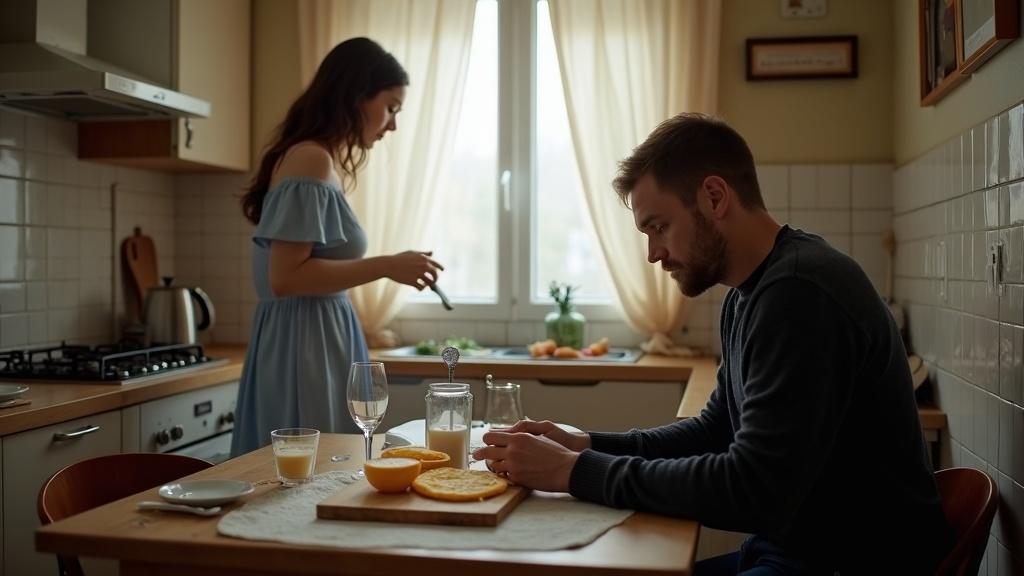 Свадебное торжество прошло всего три дня назад, а в квартире Екатерины всё ещё витал аромат свежих цветов, вперемешку с лёгким запахом шампанского, случайно пролитого на ковёр во время предсвадебной суеты. Екатерина, пока ещё не привыкшая к новой роли супруги, с радостной суетой хлопотала на кухне, нарезая сыр к завтраку. Ей казалось, что теперь вся её жизнь будет похожа на бесконечный праздник — воздушный и светлый, словно фата, которую она аккуратно сложила в коробку и убрала на антресоль.