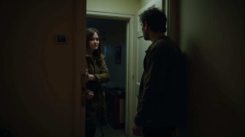 Людмила отступила на площадку. Олег сделал шаг вперёд, глаза метались. — Олег, подожди, я сейчас быстро…