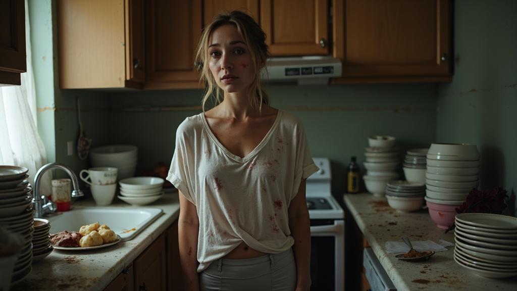 Она стояла посреди кухни. Повсюду грязная посуда — даже слово «гора» звучало бы слишком мягко. Это был настоящий Эверест из тарелок и чашек. Через пару часов должны были приехать деловые партнёры Максима — люди, от которых зависело его повышение. Столовый сервиз, доставшийся ей ещё от бабушки, лежал на дне раковины в жирной пене.