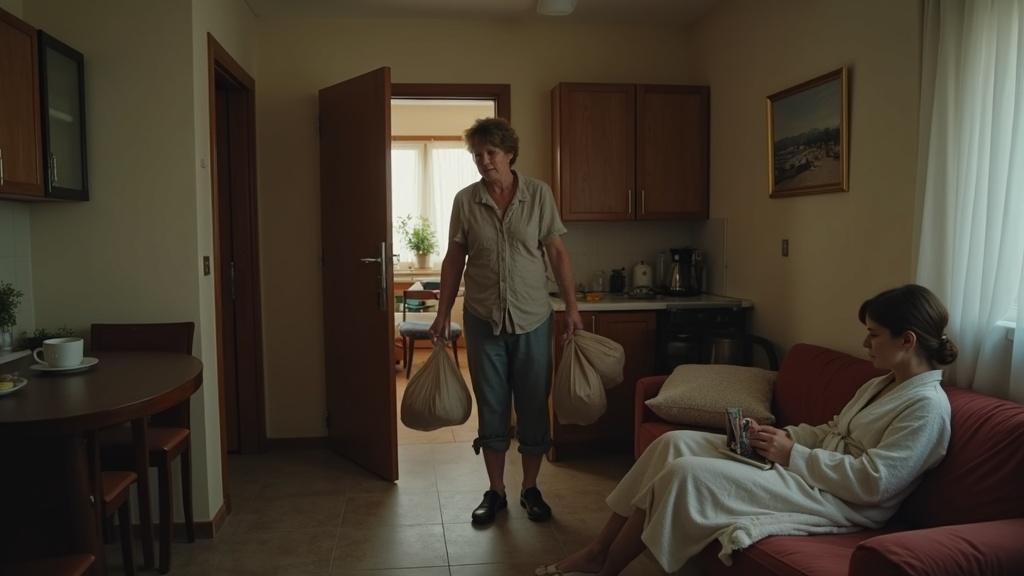Мария застыла в дверях, с трудом удерживая в онемевших от напряжения пальцах тяжёлые сумки с продуктами. После двенадцатичасовой смены в логистическом центре ноги гудели от усталости, а в голове пульсировала боль. Её взгляд скользнул к дивану. Там, уютно устроившись в её любимом махровом халате, развалилась сестра Оксанка и лениво перелистывала глянцевый журнал.