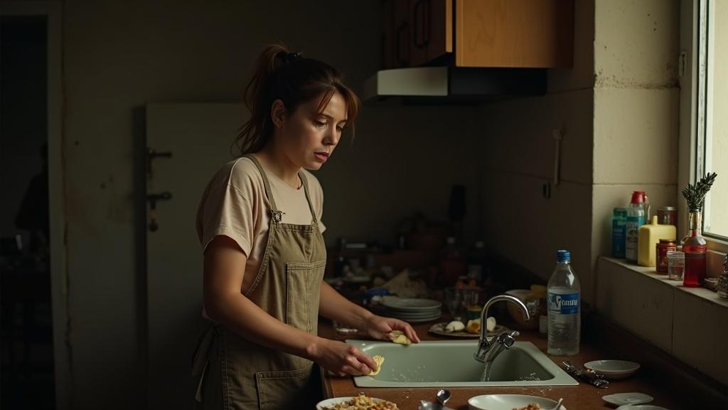 Оксанка стояла у мойки с губкой в руке. Это была уже третья порция посуды за вечер. Мирон сидел напротив Арсена и молча наблюдал за происходящим.