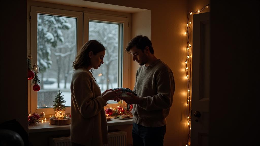 Мы были по-настоящему счастливы. На столе лежала крахмальная скатерть от свекрови; гирлянда в углу мигала разноцветьем — Дмитрий сам паял её два вечера подряд. Нам ничего больше было не нужно: только мы вдвоём и этот уютный праздник.