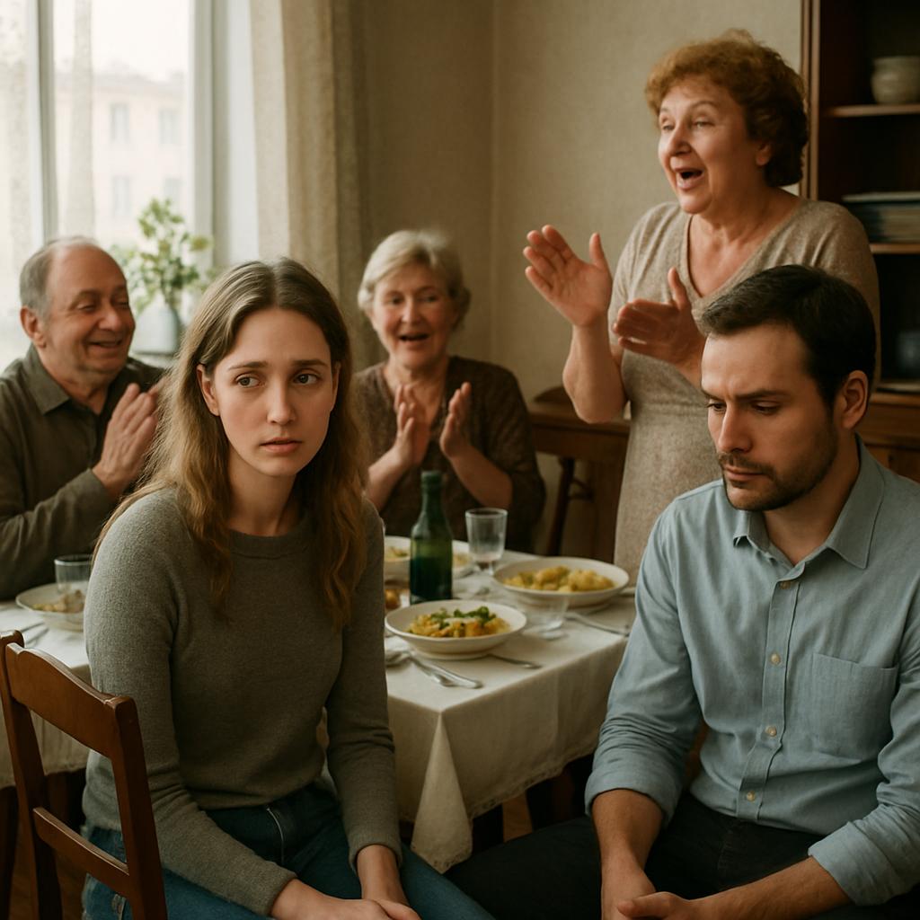 — А теперь, мои дорогие, настал момент главного сюрприза! — Галина постучала вилкой по хрустальному бокалу, призывая всех к вниманию. Звон стекла прозвучал для Марии как зловещий набат, хотя она ещё не понимала, что именно сегодня окажется похороненным — её брак или остатки здравого рассудка.