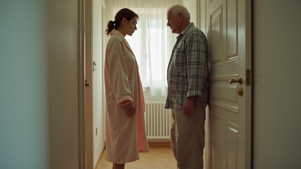 Богдан произнёс это так, словно я была здесь посторонней. Хотя я всего лишь вышла из своей ванной — в собственном халате, с полотенцем на влажных волосах. Сделала шаг в коридор и замерла. Там переминался с ноги на ногу какой‑то мужчина лет шестидесяти: седой, в растянутых на коленях трениках и клетчатой рубашке, застёгнутой кое-как, не на те пуговицы.