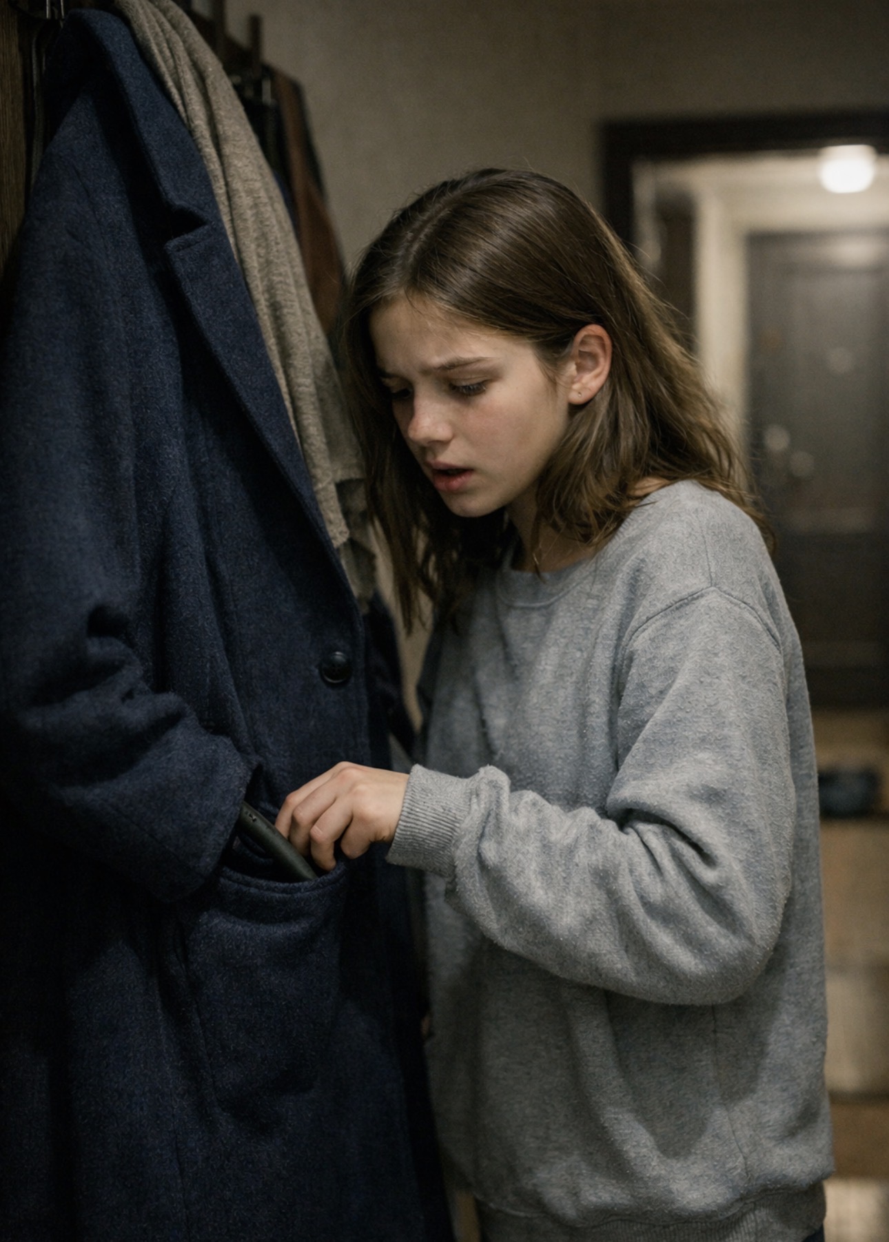 Убедившись, что дома никого нет, она сняла с вешалки пальто Галины и поспешно, почти рывком, спрятала некий предмет во внутренний карман. Затем женщина достала телефон и тихо произнесла в трубку: