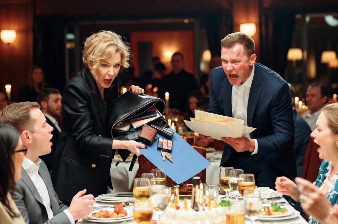 Галина Степановна одним резким, почти карикатурным движением перевернула мою сумку прямо над праздничным столом. На белоснежную скатерть, пачкая соус «цезарь» и задевая бокалы с ледяным просекко, посыпалось всё содержимое: пудреница, связка ключей с брелоком-каштаном, кошелек и… массивная папка из темно-синей кожи.