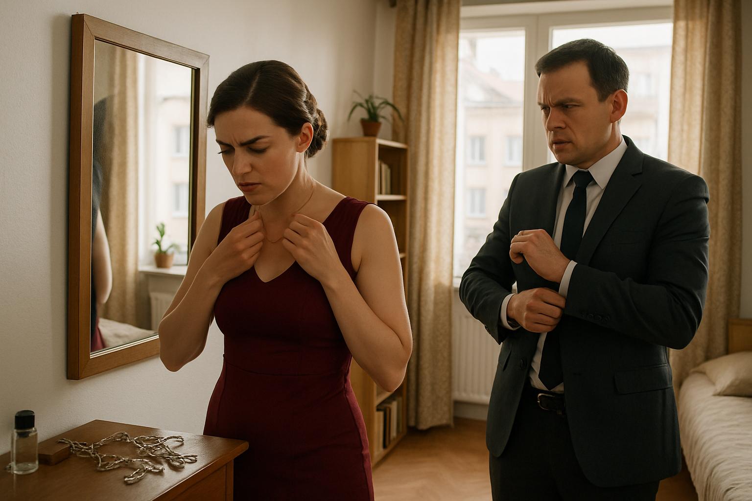 Марьяна медленно выпрямилась. В её взгляде промелькнуло понимание. Она окинула комнату глазами и остановилась на алом платье, аккуратно разложенном на кровати. Его она купила специально к юбилею свёкра — изящное, с асимметричным вырезом, подчёркивающее фигуру, но, как ей казалось, вполне уместное.