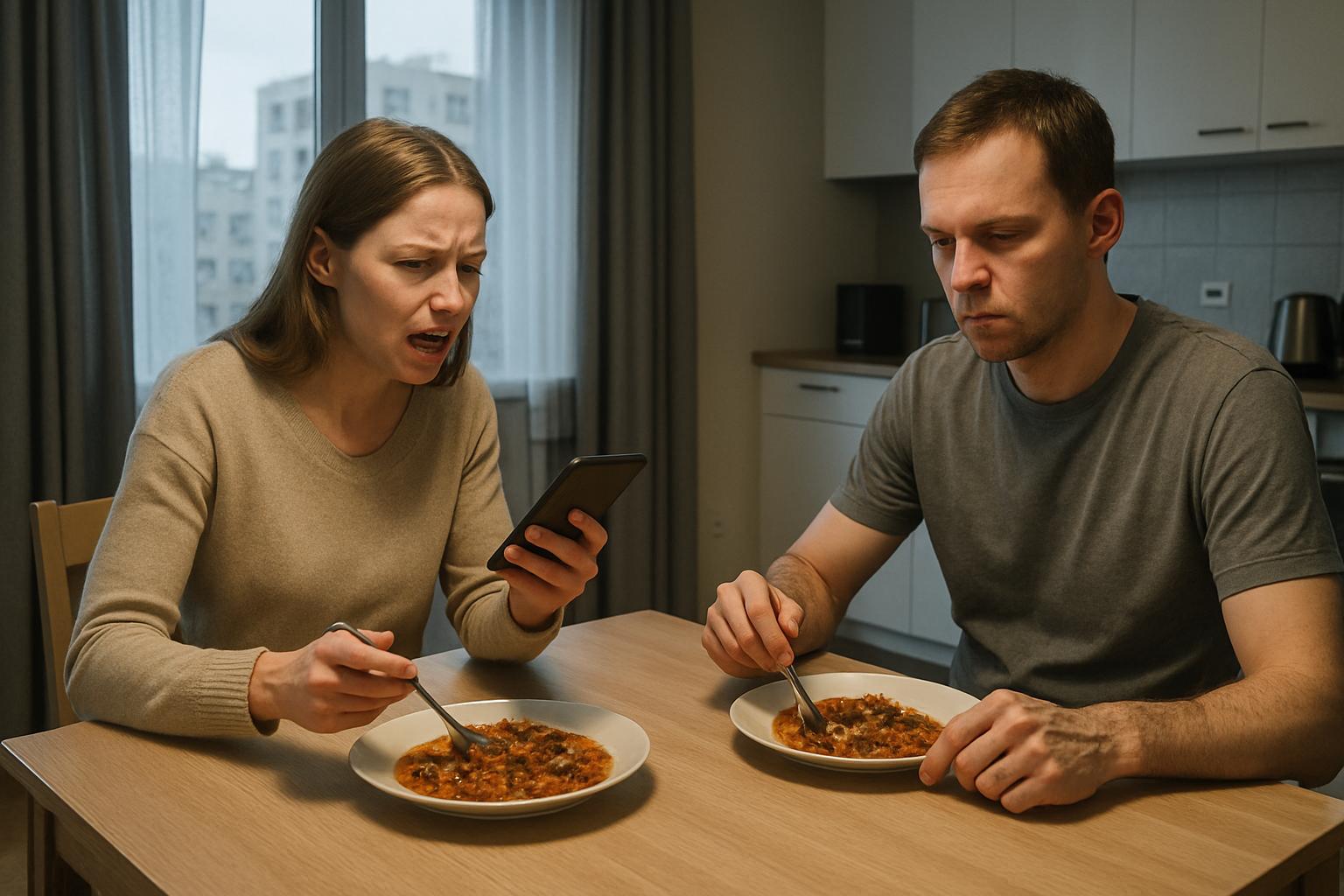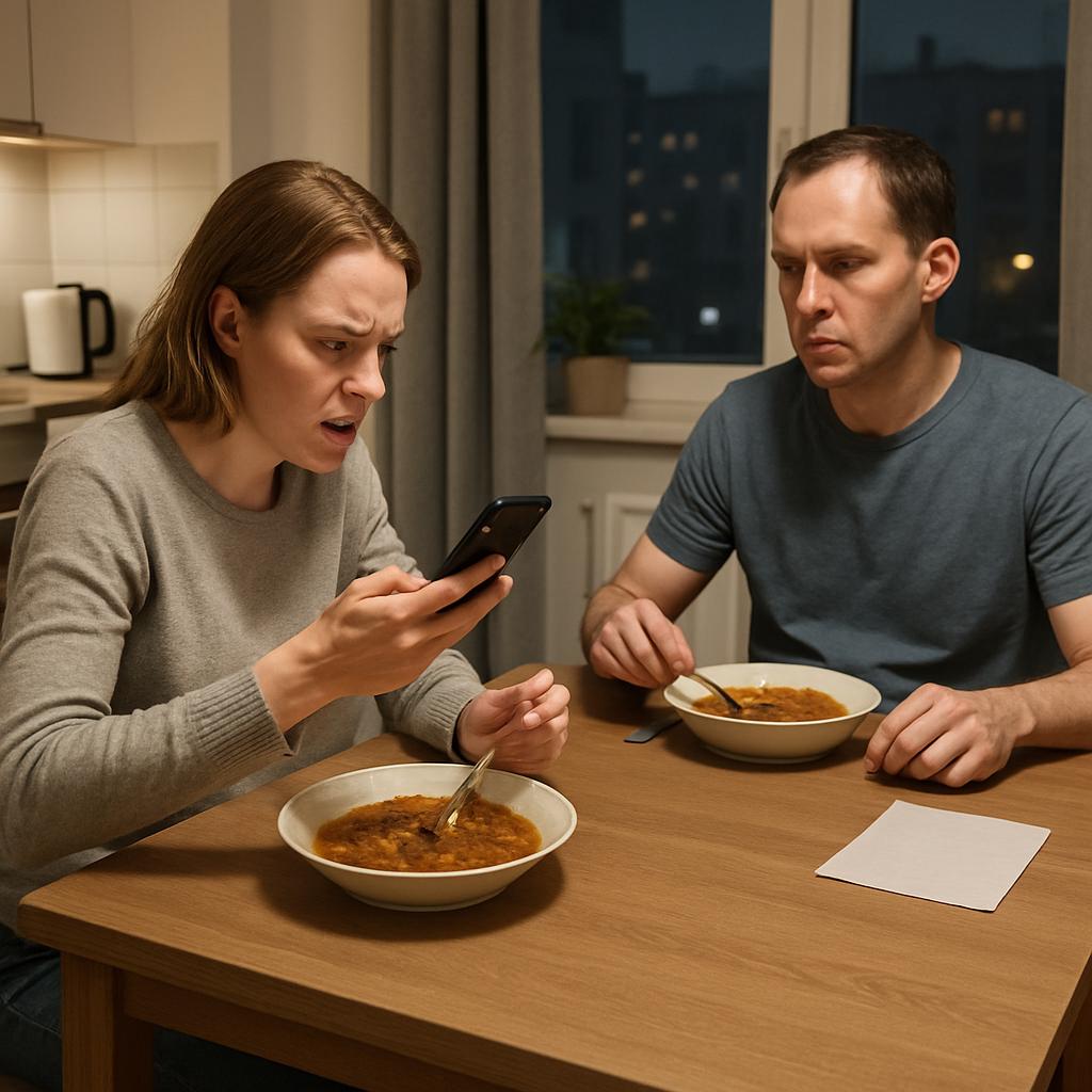 Богдан аккуратно положил вилку, промокнул губы салфеткой, скомкал её и лишь затем поднял на жену взгляд — прямой, сухой и совершенно пустой.