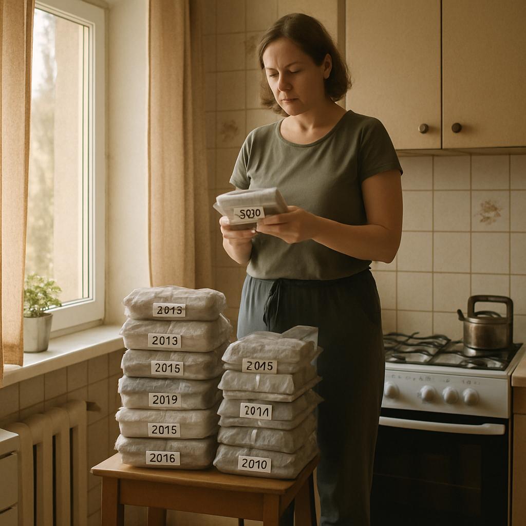 Двадцать комплектов. Ровно двадцать. Я стояла на табуретке, почти по пояс скрывшись в верхнем шкафу, и пересчитывала их снова и снова, хотя ошибиться было невозможно: каждый набор аккуратно затянут в целлофан, перевязан ленточкой, на каждом — подпись моей рукой: «ДР-2005», «ДР-2006»… и так до «ДР-2024». Все одинаковые. Бежевого цвета. С вышитой буквой «К» — по фамилии мужа, Кравченко.