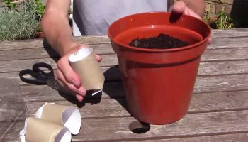 Садовник ставит рулоны туалетной бумаги в горшки с растениями и показывает блестящий трюк