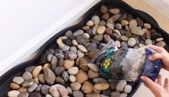 Девушка заполняет пластиковый лоток камнями для его функциональности