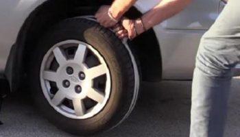 Молодой человек оборачивает веревку вокруг переднего колеса и тянет изо всех сил. Этот трюк может спасти вас