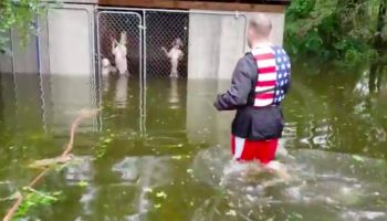 Герой-волонтер спасает 6 собак, которых оставили в запертой клетке во время урагана Флоренция!