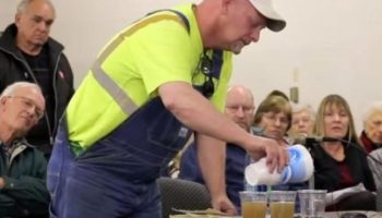 Посмотрите, как этот фермер просит уполномоченных лиц по вопросам нефти и газа выпить воду из скважины!