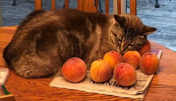 Этот очаровательный кот любит персики, а люди в Интернете любуются им