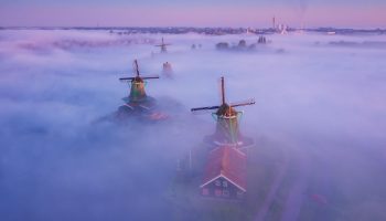 Я сфотографировал голландские ветряные мельницы в тумане, и получился волшебный результат