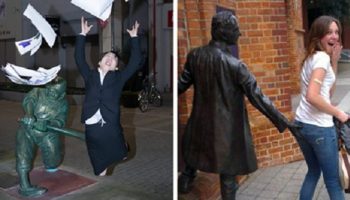 10+ людей, которые умеют позировать возле скульптур совершенно на другом уровне