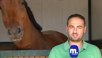Человек в шаге от загона с лошадью снимает репортаж…получается очень смешно!
