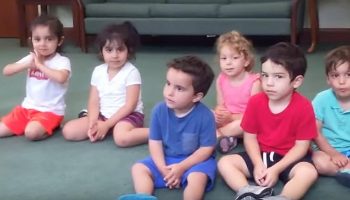 Урок музыки в классе. Обратите внимание на маленького мальчика в синем…