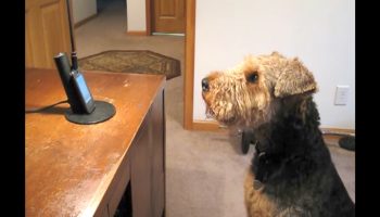 Собака зовет хозяйку в телефоне, а та не может перестать смеяться над тем, что пес хочет ей донести