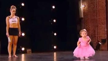 Крошечная Балерина следин за мамой на сцене и не отрывает глаз с ее ног