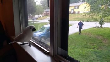 Какаду ждет дома хозяина. Когда мужчина приходит с работы, попугай настолько взволнован, что Вы должны обязательно увидеть эти эмоции