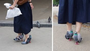 Люди волнуются за эту японку, прогуливающуюся в обуви в виде голубей