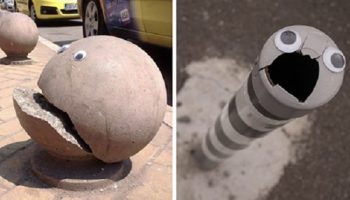 Кое-кто в Болгарии приклеил Googly глаза на сломанные объекты улицы