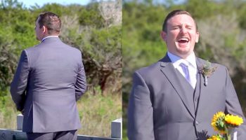 Жених ждет, чтобы поскорее увидеть невесту. Оборачивается — а она не в свадебном платье