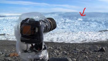 Человек устанавливает камеру, направленную на ледник. Момент! И снят невообразимый Материал