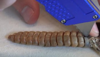 Человек разрезает хвост гремучей змеи. Посмотрите на то, что внутри