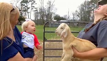 Мама поднесла девочку к козе. Получился веселый «разговор»