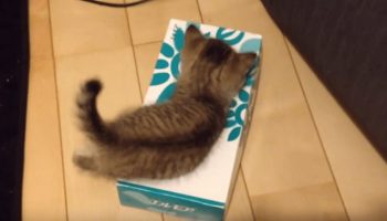 Котенок хочет залезть внутрь коробки. Что происходит дальше? Не то,что вы ожидаете!