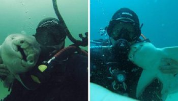 Всякий раз, когда он занимается Дайвингом, эта акула подплывает к нему, чтобы пообниматься
