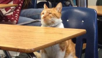 Кошка продолжает посещать школу, за что школа делает ее первым учеником среди котов